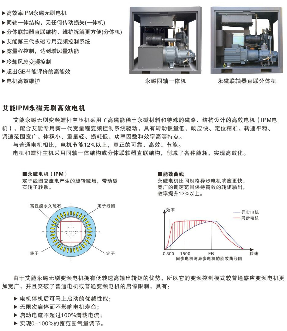 艾能壓縮機(jī)是高效、品質(zhì)卓越的,憑借雄厚的技術(shù)力量和豐富的制造經(jīng)驗(yàn),艾能螺桿壓縮機(jī)品種及規(guī)格齊全,能夠滿足不同用戶對(duì)氣體品質(zhì)、氣量大小、使用工況等的不同要求,主要產(chǎn)品有:固定式螺桿空壓機(jī)、雙級(jí)壓縮永磁變頻空壓機(jī)、變頻空壓機(jī)、永磁變頻空壓機(jī)、低壓力螺桿空壓機(jī)、工程用移動(dòng)式螺桿空壓機(jī)、蝸旋式螺桿空壓機(jī)、礦用移動(dòng)式螺桿空壓機(jī)、無(wú)油螺桿空壓機(jī)、無(wú)油中高壓壓縮機(jī)等等。對(duì)特種行業(yè)或特殊要求,艾能公司更擅長(zhǎng)按照用戶要求定制特殊的壓縮機(jī)。