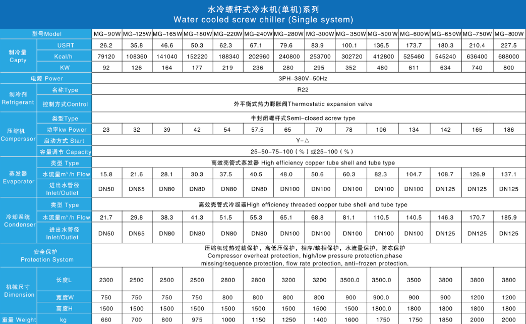 MG-WB系列水冷螺桿式冷水機(jī)可用于注塑、擠出、電鍍、模具、皮革、印刷、液壓、化工、型材氧化、反應(yīng)斧、化纖、真空鍍膜、造紙紡織、中央空調(diào)等方面制冷及各種冰水集中供水。