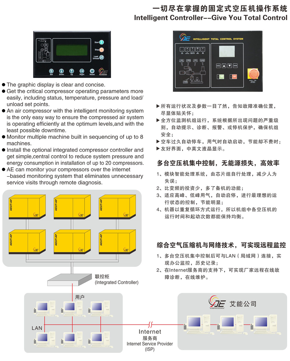 艾能公司在制造一流空壓機(jī)的同時(shí),更廣泛提供售前和售后服務(wù)---快速、可靠、革新,以期最大程度上滿足用戶需求。智勝公司繼續(xù)為全國(guó)范圍的用戶提供專(zhuān)業(yè)、周到、快捷的服務(wù)。