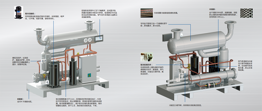 由于冷熱交接器、蒸發(fā)器及氣水分離器采用不銹鋼材質(zhì),不會(huì)由于長(zhǎng)時(shí)間使用而產(chǎn)生腐蝕變質(zhì),效果更穩(wěn)定。
