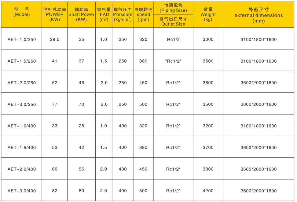 • AET系列螺桿無油高壓活塞壓縮機(jī)